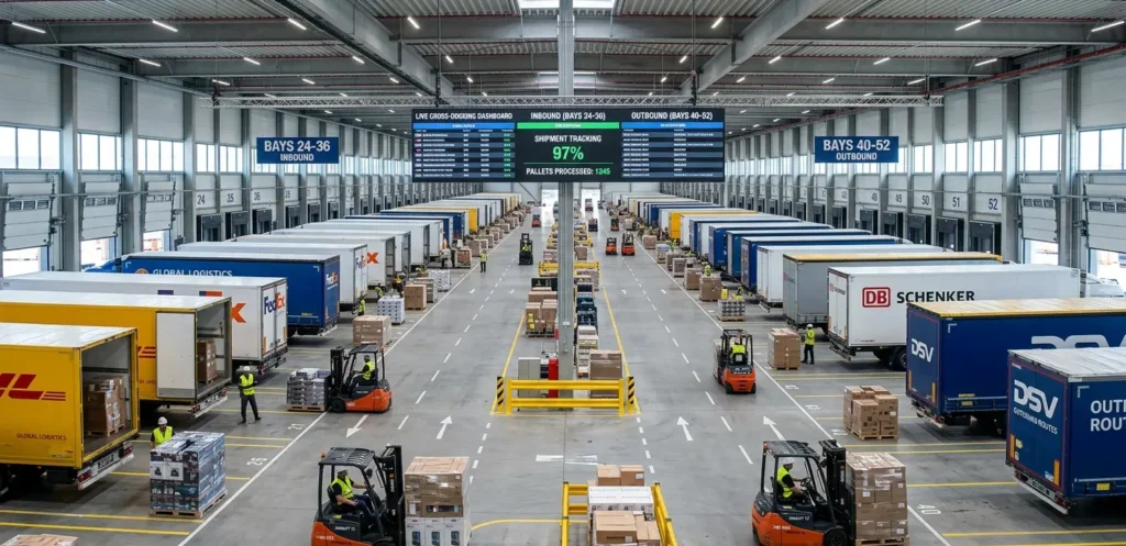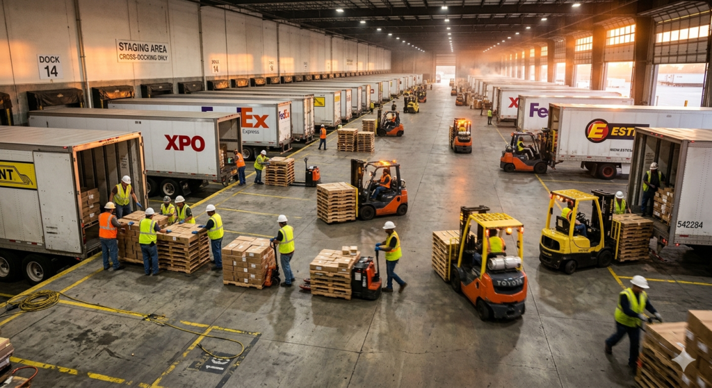 Cross-docking is a freight logistics process where inbound shipments are transferred directly from an arriving carrier to an outbound vehicle at a dock facility — with no intermediate warehousing or storage. The freight is unloaded, sorted if needed, and immediately reloaded onto a departing truck, eliminating dwell time and reducing handling costs throughout the supply chain.
